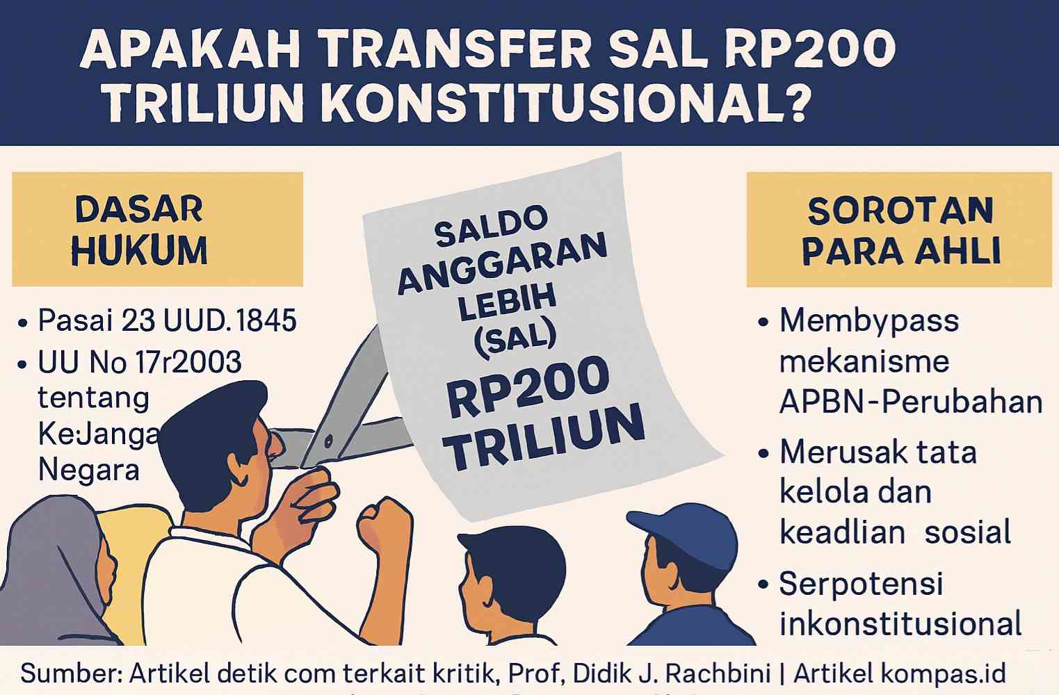 Di tengah harapan publik, muncul suara kritis dari sejumlah pakar yang mempertanyakan legalitas dan tata kelola pengalihan SAL Rp200 triliun ke bank HIMBARA.