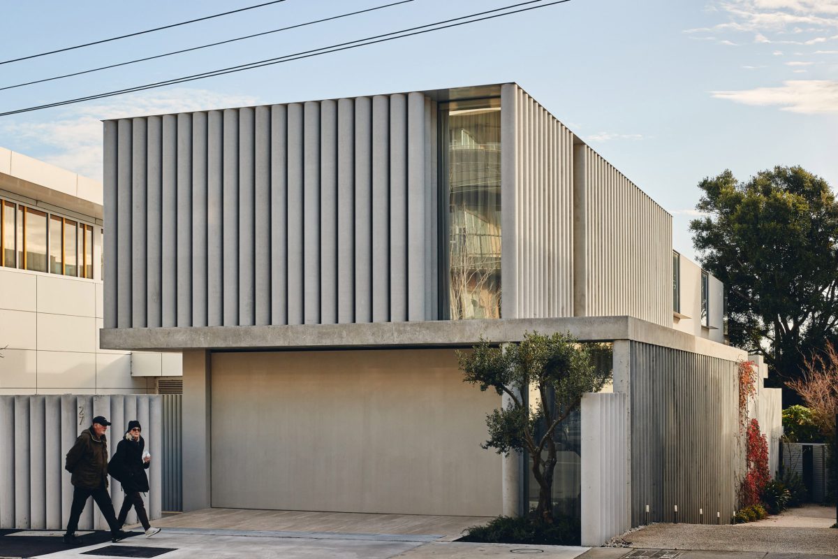 Di kawasan Toorak, Australia, sebuah hunian unik hadir dengan konsep yang menarik dan berkelas. Didesain oleh FGR Architects, rumah ini diberi nama Concrete Curtain. Nama tersebut menggambarkan desain yang menghadirkan ketenangan sekaligus kepresisian dalam arsitektur. Pendekatan utamanya adalah metafora tirai berlipat yang diwujudkan melalui deretan kolom beton vertikal yang menyerupai gelombang. Elemen ini menjadi mediator antara cahaya, privasi, dan keterbukaan.